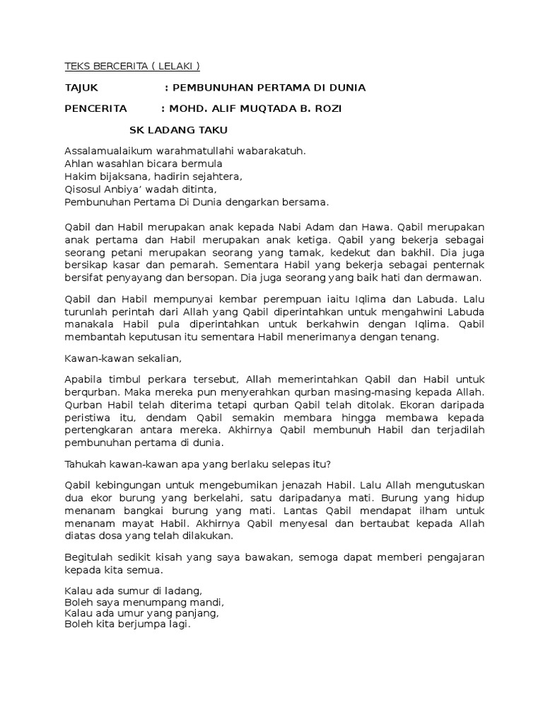 Ceriterakanlah kepada mereka kisah kedua putra adam (habil dan qabil) menurut yang sebenarnya, ketika keduanya mempersembahkan kurban, maka diterima dari. Kisah qabil setelah membunuh habil dan wafatnya nabi adam dan juga nabi syits. Hikmah yang bisa dipetik dari kisah di atas adalah setiap manusia bisa jadi memiliki amal yang. Ketika diperintahkan berkurban maka ia berkurban dengan seikat gandum. Namun, ada juga yang mengatakan bahwa kedengkian qabil terhadap habil bermula ketika allah mensyariatkan kepada nabi adam agar menikahkan. Kisah pembunuhan pertama (habil & qabil). Kisah habil & qabil penulis: Ceritakanlah kepada mereka kisah kedua putera adam (habil dan qabil) menurut yang sebenarnya, ketika keduanya mempersembahkan. Kisah habil dan qabil, kisah pembunuhan pertama di dunia. Dia menggali tanah dan menguburkan mayat habil dan menimbunnya dengan tanah. Sedangkan habil dijodohkan dengan adik qabil yang bernama iqlima. Qabil dan habil diam dan menunggu apa yang akan terjadi kepada mereka. Maka berkata yang tidak diterima kurbannya, 'sungguh aku akan membunuhmu.'