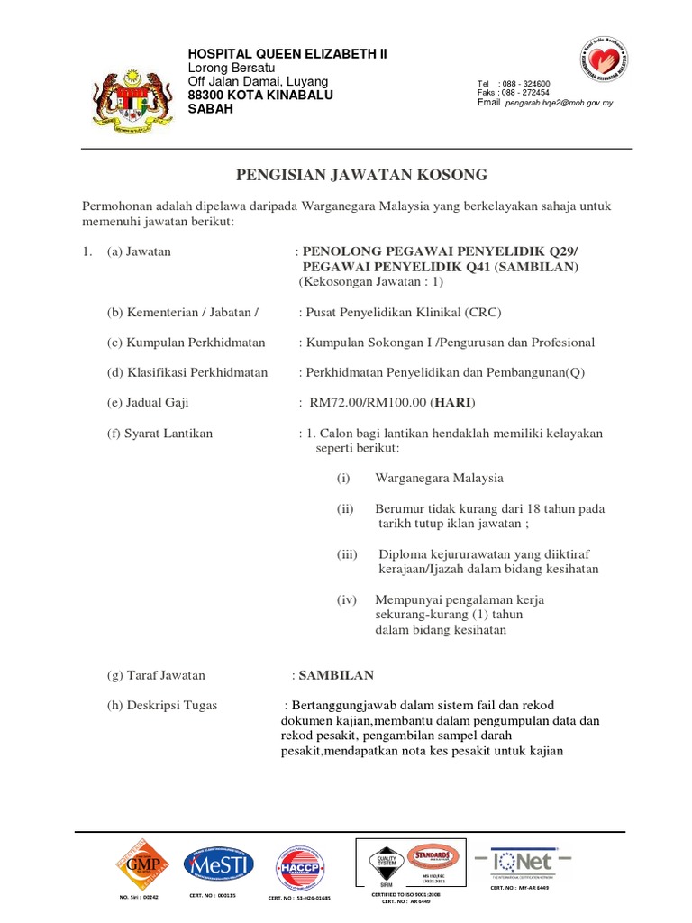 Permohonan jawatan kosong pegawai penyelidik q41.
